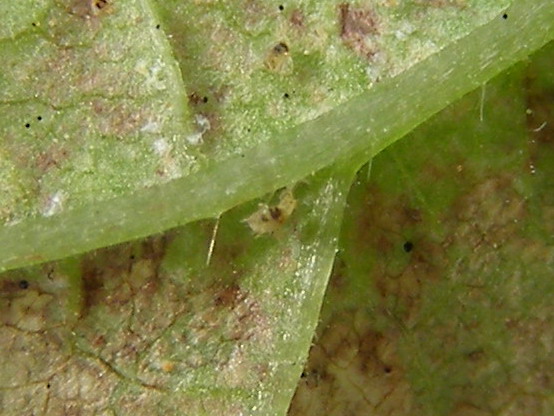 Этот вид клеща более опасен для винограда, чем войлочный, поскольку при большой численности приводит к быстрому и массовому отмиранию листьев. Вредитель встречается во всех районах виноградарства. Живет на нижней стороне листа, где прокалывает кожицу и высасывает содержимое клеток, в том числе и хлорофилловые зерна. В местах уколов вначале появляются желтые точки, которые, постепенно разрастаясь, сливаются в крупные пятна. При этом верхняя сторона пластинки листа приобретает у светлоокрашенных сортов желтую окраску, а у темноокрашенных кирпично-красную. При сильном поражении вся пластинка листа становится грязно-желтой или красной, а затем полностью отмирает. В первую очередь и наиболее сильно поражаются сорта, у которых листья слабо опушены (Рислинг, Алиготе, различные Мускаты). При сильном заселении клещом листья уже в конце июня - начале июля прекращают свою деятельность, что резко снижает урожай. Листья белых сортов винограда, поврежденные клещами, плохо растут. Они деформируются и съеживаются. На них появляется мраморный рисунок, поскольку клещи прокалывают кожицу листа и высасывают содержимое клеток вместе с хлорофиллом. В местах уколов образуются белесые точки, появляются грязно-желтые расплывчатые пятна, которые постепенно засыхают. При внимательном осмотре нижней стороны листьев можно обнаружить многочисленные красноватые или желтоватые точки, едва различимые невооруженным глазом. Развитие заселенных клещом растений протекает медленно и междоузлия остаются короткими. На розовых сортах винограда при повреждениях наблюдается пожелтение взрослых листьев, которые постепенно краснеют, а затем опадают. Нетронутые клещом жилки образуют на покрасневшем листе зеленую сетку. Повреждения могут начаться с очагов и охватить целый участок виноградника. Обычно кусты неодинаково заселяются клещами. При очень раннем поражении винограда клещами происходит опадение листьев; при более позднем наблюдается ухудшение в развитии и созревании виноградных кустов. В обоих случаях урожай значительно снижается.