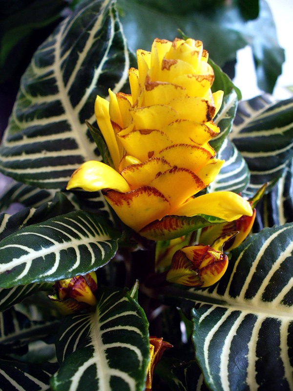 В переводе с греческого афеландра означает «простой мужчина»: растение имеет простые одногнездные пыльники. Род включает около 50 видов низкорослых кустарников, произрастающих в тропиках Америки. В комнатных условиях разводят лишь один вид: афеландру оттопыренную). Родина — Бразилия. Афеландра имеет темно-зеленые листья с яркими белыми полосами вдоль жилок и палево-желтые цветки, на треть прикрытые ярко-желтыми прицветникам^, плохо завязывает семена. Культивируются главным образом формы с ярко-оранжевыми соцветиями и более мелкое растение с ярко-желтыми соцветиями, а также их гибриды. Соцветия достигают 20 см в длину и держатся весной и летом в течение 6—8 недель, а мелкие цветки опадают через несколько дней. Декоративные листья афеландры оттопыренной придают нарядный вид растению даже без соцветий. Однако в культуре растения ведут себя очень капризно и цветут только в закрытом «цветочном окне» при постоянной температуре. Для комнатного садоводства лучше всего ежегодно покупать новые цветущие экземпляры. Местоположение: светлое, но не солнечное; летом содержат при температуре не ниже 20°С, афеландра оттопыренная выдерживает понижение температуры до 10°С, что положительно влияет на цветение, если растение находится в светлом месте. Полив: почва должна быть умеренно влажной; растение, зимующее в прохладном месте, поливают ограниченно; избыток воды для афеландры так же опасен, как пересыхание земляного кома. Растению необходима высокая влажность воздуха, поэтому его следует часто опрыскивать, используя мягкую прохладную воду; керамическую посуду лучше всего погрузить во влажный торф или керамзит. Земельная смесь: состоит из равных частей листовой, дерновой земли, торфа, перегноя и песка. Подкормка: с весны до лета каждые 2 недели вносят цветочные удобрения в жидком виде. Размножение: семенами редко, весной — верхушечными черенками, на черенки срезают однолетние вызревшие побеги длиной 10—15 см. Их сажают на глубину 2 см в песок или смесь торфа с песком и держат под стеклом при температуре 20—25°С. Черенки укореняются через 15-18 дней. При семенном размножении сеянцы зацветают в первый же год. Примечание: для сохранения формы куста весной после пересадки растение следует сильно обрезать.