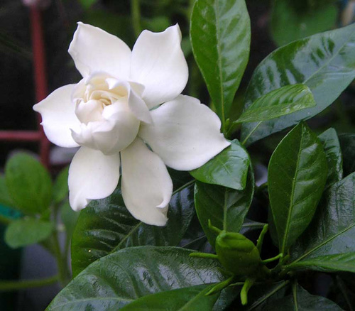 Род назван в честь американского любителя-садовода А. Гардена (1730—1791), корреспондента К. Линнея. Около 250 видов вечнозеленых кустарников, реже — небольших деревьев, распространенных в тропиках и субтропиках Африки и Восточной Азии. В комнатах нередко разводят капский жасмин, или гардению жасминовидную. Родина — Китай, Япония, растет в субтропических лесах. Вечнозеленый кустарник высотой до 180 см. Стебли ветвящиеся, с буроватой шелушащейся корой. Листья длиной до 8 см, короткочерешковые, широколанцетные или обратнояйцевидные, островатые, к основанию суженные, цельнокрайние, голые, глянцевитые. Цветки одиночные или в малоцветковом (3—6) щитковидном соцветии, веохушечном или пазушном, белые, до 8 см в диаметре. Разводят в основном формы с махровыми цветками. Цветет летом. Культивируется с 1754 г. В XIX веке элегантные мужчины носили цветок гардении в петлице. В настоящее время это растение переживает второе рождение. В горшках или в больших деревянных кадках разводят только гардению жасминовидную с кремовыми душистыми одиночными либо собранными в соцветия цветками. В культуре этот кустарник с темно-зелеными кожистыми листьями, цветущий летом и осенью, довольно требователен. Местоположение: светлое, солнечное, но защищенное от прямых солнечных лучей; растение может находиться на свежем воздухе в защищенном месте, однако осенью, перед началом цветения, его следует внести в помещение; зимой гардении держат при температуре 15—20°С, обеспечивают приток свежего воздуха; почва должна иметь температуру окружающей среды либо более высокую. Полив: почву держат постоянно слегка влажной, для полива используют только мягкую воду комнатной температуры; в период образования цветков растение нуждается в высокой влажности воздуха, поэтому горшок погружают во влажный торф либо ставят на поддон, заполненный водой. До того как растение зацветет, опрыскивают его часто, а затем опрыскивание прекращают, так как оно вызывает образование пятен на цветках. При систематическом поливе жесткой водой листья желтеют. Земельная смесь: гардения нуждается в кислой почве, составленной из верхового торфа или хвойной земли, к которым примешано немного дерновой земли и песка. Подкормка: с весны до позднего лета еженедельно вносят удобрение из расчета 20 г на 10 л воды, без извести. Размножение: весной и летом верхушечными полу- одревесневшими черенками, длина черенка 8—10 см. Их высаживают в смесь, составленную из равных частей песка и торфа; укоренение происходит при температуре 22—24°С. Укоренившиеся черенки высаживают в горшки диаметром 7 см в следующую почвенную смесь: дерновой, перегнойной, торфяной земли и песка, взятых по 1 части. Примечание: в период образования почек и цветков растение плохо переносит колебания температуры. Нерегулярный полив вызывает сбрасывание цветочных почек. Весной растения обрезают или прищипывают. При пожелтении листьев рекомендуется опрыскивание растений слабым раствором сульфата железа. Лекарственное значение: в народной медицине ряда стран используют плоды и корни гардении в виде отваров, применяя их как противовоспалительное, жаропонижающее, кровоостанавливающее средство, а также при желтухе, заболеваниях кожи (пузырчатка), пищевода, мастите, стоматите, тонзиллите. Относительно более мелкие плоды эффективны при болезнях л