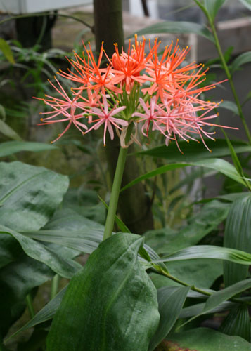 Около 50 видов луковичных травянистых растений, распространенных в тропических районах Африки, а также в Южной Африке и на острове Сокотра. В комнатной культуре известны 2 вида, их гибриды. Гемантус белоцветковый. Родина — Южная Африка; растет на скалистых склонах гор, в зарослях кустарников. Известна садовая форма с опушенными сверху листьями и розовыми тычинками. Луковица обычно округлая, иногда несколько сжатая с боков, зеленая, до 12 см в диаметре. Наружные покровы ее сочные, большая часть луковицы расположена над землей. Листья в двусторонней розетке (2—4, до 6), сравнительно толстые, укороченно-ремневидные, на верхушке закругленные, длиной 15—20 см, шириной 6—9 см, по краю реснитчатые, темно-зеленые. Жилки не просматриваются. Цветки собраны в плотный зонтик на конце мясистого безлистного цветоноса длиной до 20 см, частично окружены пятью беловато-зелеными прицветниками. Околоцветник редуцирован, поэтому в соцветии видны лишь белые тычиночные нити и желтые пыльники. Плоды — красные или оранжево-красные сочные односемянные ягоды. Гемантус Катарины. Родина — Юго-Восточная Африка, растет на каменистых холмах. Луковица до 10 см в диаметре, округлая, наполовину возвышающаяся над землей. Листья собраны в розетку, черешковые, влагалища их замкнутые, удлиненные, образуют ложный стебель высотой до 15 см. Пластинки листьев сравнительно тонкие, длиной до 40 см и шириной 15 см, светло-зеленые, овальные или широколанцетные, по краю волнистые, в нижней половине желобчатые, с двумя менее ясными складками в верхней части. Цветки красные, собраны в плотное зонтиковидное или головчатое соцветие до 20 см в диаметре, сидящее на безлистных цветоносах высотой до 60 см, окруженное несколькими прицветными чешуями. Известен садовый гибрид Король Альберт с ярко-красными соцветиями. Агротехника вполне доступна любителям комнатных растений. Местоположение: светлое либо полутенистое, причем гемантус белоцветковый может стоять на солнце; зимой более прохладную температуру (около 15°С) растение переносит лучше, чем температуру отапливаемого помещения; луковицу гемантуса Катарины после засыхания листьев оставляют в горшке и сохраняют при температуре 10—14°С; период покоя приходится на осень или начало зимы. Полив: с весны до осени почва должна быть постоянно влажной, гемантус белоцветковый легче переносит нехватку воды, чем ее избыток; зимой полив ограничен; гемантус Катарины поздним летом и осенью поливают очень ограниченно, чтобы засохли листья. Земельная смесь: состоит из дерновой, листовой, перегнойной земли и песка, взятых в соотношении 3:1:1:1. Подкормка: только летом каждые 2 недели вносят цветочное удобрение. Размножение: весной — дочерними луковицами, отделенными во время пересадки. Примечание: гемантусы используют не только для выращивания в горшке, но и для срезки в букет.