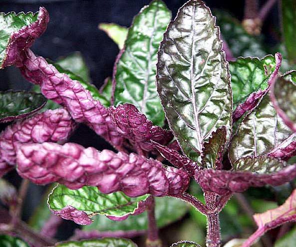 Название рода происходит от греческих слов «наполовину» и «расписной» и обусловлено своеобразной окраской листа. Существует около 100 видов этих травянистых многолетников с ползучими побегами, распространенных в тропиках Юго-Восточной Азии, Австралии и Океании. Гемиграфис чередующийся. Родина — остров Ява, где растет во влажных тропических лесах. Травянистое многолетнее растение с полегающими и укореняющимися стеблями. Листья длиной до 7 см, черешковые, яйцевидные, с сердцевидным основанием, по краю городчатые, голые, сверху зеленовато-лиловые с красноватыми жилками, снизу лилово-пурпурные. Черешки буроватые, опушенные. Цветки мелкие, собраны в верхушечный рыхлый колос, белые. Каждый цветок снизу прикрыт крупным прицветником. Культивируется с 1885 г. Известен гемиграфис выемчатый, отличающийся от первого более узкими, зазубренными по краю листьями, темно-зелеными сверху и красными снизу. В горшках долго не растет, поскольку ему нужна высокая влажность воздуха и постоянная температура, которую можно поддерживать в «цветочном окне». Местоположение: от светлого, но защищенного от прямых солнечных лучей до слегка притененного; температура воздуха должна быть постоянной и не опускаться зимой ниже 18°С; нельзя также допускать переохлаждения почвы. Полив: почву держат слегка влажной, нельзя допускать избытка воды; влажность воздуха должна быть 60%; растение поливают водой комнатной температуры без извести, периодически опрыскивают. Земельная смесь: состоит из листовой и перегнойной земли (2:2) с добавлением торфа и песка (0,5 части). Подкормка: с весны до позднего лета каждые 2 недели вносят удобрение без извести или сильно разведенное цветочное удобрение. Размножение: весной черенками.