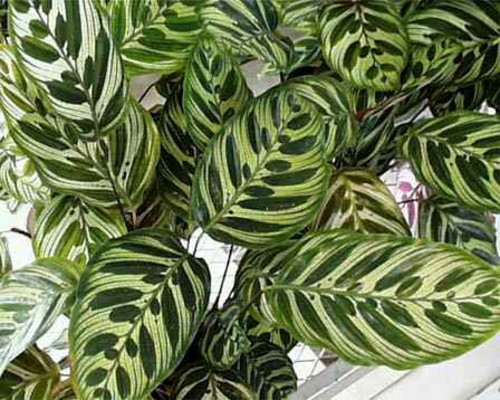 Название рода происходит от древнегреческого слова «корзина». Листья калатеи использовали для плетения. Известно более 150 видов, произрастающих в тропиках Южной Америки, преимущественно в Бразилии. В комнатах разводят многие виды этих растений с красивыми листьями самых разных форм и окраски. Однако чаще всего можно встретить калатеи Макоя, полосчатую, украшенную, шафранную. Местоположение: от светлого, но не солнечного до тенистого, калатеи — теплолюбивые растения; зимой их содержат при температуре не ниже 18—20°С. Полив: весь год поливают обильно мягкой водой комнатной температуры, необходимо чаще опрыскивать растения и увлажнять воздух возле них. Земельная смесь: состоит из дерновой, листовой, перегнойной земли с добавлением хвойной земли и древесного угля (2:1:1:0,5). Подкормка: с весны до осени каждые 2 недели вносят удобрение для цветов, но концентрации выбирают слабые. Размножение: делением корневищ во время весенней пересадки в легкую сыпучую почву. Примечание: калатеи лучше растут в плошках.