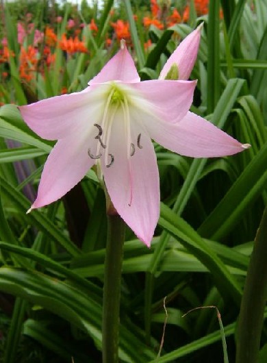 Род носит древнегреческое название этого растения. Более 100 видов луковичных растений, распространенных в тропической и субтропической зонах Западного и Восточного полушария. Любители-цветоводы выращивают чаще всего 2 вида: кринум азиатский и кринум Мура. Кринум азиатский. Родина — горные районы тропической Азии. Многолетнее луковичное травянистое растение высотой 45—60 см. Луковицы ядовитые, диаметром 10—14 см и длиной 15—35 см с шейкой. Листья, их число 20—30, линейные, до 120 см длиной, волнистые по краю. Соцветие — зонтик из 20—50 цветков без аромата. Цветки белые с зеленоватым рисунком. Цветет в марте—октябре. Кринум Мура. Родина — Юго-Восточная Африка, растет на каменистых склонах, в лесах. Луковичное многолетнее растение. Луковица до 20 см в диаметре, шаровидная, покрыта буроватыми пленчатыми чешуями, наполовину погруженная в землю. Замкнутые влагалища выходящих из нее листьев образуют ложный стебель высотой до 60 см. Листья светло-зеле- ные, длиной до 1 м, шириной 10—12 см, ремневидные, желобчатые. Цветки розовые, до 7,5 см длиной, собраны по 6—12 в зонтиковидное соцветие, обычно невысоко поднимающееся над розеткой листьев. Культивируется с 1863 г. Известна садовая форма с белыми цветками. Агротехника несложная, но необходимо придерживаться следующих рекомендаций. Местоположение: летом желательно яркое освещение. Полив: после цветения наступает период покоя, растение сбрасывает большую часть листьев, полив постепенно сокращают; зимой держат при температуре 8—10°С, поливают редко и мало. Земельная смесь: состоит из дерновой, перегнойной земли, торфа и песка в равных по объему долях с добавлением сухого коровяка. Подкормка: проводят после появления цветочной стрелки слабым раствором цветочных удобрений. Размножение: луковицами-одетками» и семенами. Примечание: луковицы-«детки» зацветают на 3—4 год после отсадки от материнского растения. В крупных горшках, диаметром 24—28 см, кринумы можно держать несколько лет, не пересаживая. Как правило, они цветут ежегодно. При пересадке 1 / 3 луковицы (в основном вся шейка) должна располагаться над поверхностью почвы. Сроки цветения можно регулировать режимом полива. Обычно растения цветут через 2—3 месяца после периода покоя. Лекарственное значение: кринум азиатский издавна применяют в восточной медицине. Листья, измельченные в однородную массу, рекомендуются в качестве горячих компрессов как жаропонижающее, при болях в печени, от головной боли и при люмбаго (приступообразная интенсивная боль в поясничной области), а также используются как средство для лечения опухолей. Отвары листьев применяют внутрь как отхаркивающее средство, наружно — от геморроя, при заболеваниях и воспалениях кожи. Кроме того, измельченные листья накладывают на раны и употребляют при абсцессах. Отвар луковиц (в свежем виде ядовиты!) используется как слабительное средство, средство, стимулирующее менструации. Все растение считается противораковым, применяется также против карбункулов.