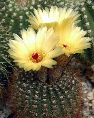 Этот род насчитывает 15 видов красивых шаровидных или колоннообразных кактусов родом из Бразилии и Аргентины. В культуре разводят несколько видов — нотокактус Оттона с желто-коричневыми колючками, нотокактус Ленингхауса с красивыми желтыми цветками, нотокактус Хасельберга с красными цветками. Разведение некрупных нотокактусов не представляет сложностей. Нотокактус Оттона. Родина — Аргентина, южная Бразилия, Уругвай. Стебель невысокий, блестящий, зеленый, приплюснуто-шаровидный, с возрастом удлиняется. Центральные колючки коричневые или красноватые, длиннее и прочнее, чем внешние. Цветки желтые, 5—7 см в диаметре. Чашелистики снаружи с красноватой жилкой. Завязь красная. Цветет в апреле—мае. Нотокактус малобородавчатый. Родина — Уругвай, Парагвай. Стебель полукруглый, бугристых ребер 13, внизу выступает нарост — «подбородок». Цветки желтые, завязь красная. Цветет в мае—июне. Местоположение: светлое, достаточно солнечное, летом в полуденные часы — притененное; идеальная температура зимой — 10—12°С, однако нотокактус может выдержать и более высокую температуру. Полив: летом, главным образом в период цветения, почва должна быть постоянно влажной, нельзя допускать избытка воды в горшке; в этот период рекомендуется мелко обрызгивать кактусы; зимой следует перенести растение в более сухое место и даже при повышенной температуре поливать его очень мало. Земельная смесь: состоит из дерновой, перегнойной, листовой земли и песка, взятых в соотношении 1:3:1:2. Подкормка: летом, в период роста, ежемесячно вносят цветочное удобрение. Размножение: семенами, которые не надо прикрывать землей, а также «детками».
