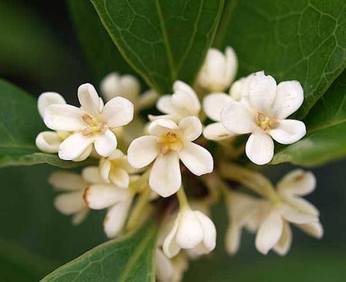 Название рода происходит от греческих слов «ароматный», «душистый» и «цветок». Объединяет 15 видов вечнозеленых кустарников и небольших деревьев, распространенных в Восточной и Юго-Восточной Азии и Северной Америке. В культуре выращивают только османтус душистый. Родина — Гималаи, Китай, Япония, Бирма, растет в лесах или по опушкам, в горах на высоте до 3700 м над уровнем моря. Небольшое вечнозеленое дерево или кустарник высотой до 10 м. Листья длиной до 10 см, кожистые, эллиптические, заостренные, в основании клиновидные, по краям тонкозубчатые или цельнокрайние. Цветки душистые, белые, собраны в щитковидные пазушные соцветия. Венчик длиной 1,5—2 см, 4-лопастный, расчлененный почти до основания. Цветет в июне—августе. Плод — односемянная яйцевидная костянка длиной около 1,5 см. Известна садовая форма с оранжевыми цветками. Местоположение: османтус предпочтительнее выращивать на светлых окнах; он хорошо переносит сухость воздуха; температура 10—14°С. Полив: летом обильный, зимой — умеренный, не пересушивающий земляной ком. Земельная смесь: состоит из дерновой, листовой и перегнойной земли и песка, взятых в соотношении 2:1:1:0,5. Подкормка: в период активного роста вносят цветочные удобрения 1 раз в 2 недели. Размножение: черенками, при температуре 18—20°С укоренение происходит в течение 20—25 дней; состав почвенной смеси для укоренения: 1 часть дерновой земли, 1 часть листовой земли и 0,5 части песка. Примечание: османтус лучше всего растет в горшках небольших размеров, диаметром 7—9 см. Лекарственное значение: в медицине используют цветки, кору стеблей и корни. Цветки применяют от кашля, как косметическое средство для ухода за кожей лица и волосами. Они обладают свойством изменять вкус других лекарств. Отвар из коры стебля рекомендуется принимать при фурункулезе и карбункулах, при коклюше и ринитах. Отвар боковых корней принимают при дисменорее, ушибах и кровоподтеках.