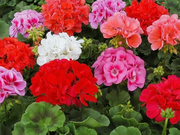 Название рода происходит от греческого слова «аист» из-за сходства плодов с клювом аиста. Другое название комнатная герань. Около 280 видов однолетних и многолетних травянистых растений, полукустарников и кустарников, распространенных главным образом в Южной Африке. Пеларгония домашняя — культурный вид, полученный в результате сложных скрещиваний нескольких видов, прежде всего пеларгонии крупноцветной. Вечнозеленый полукустарник высотой 45 см и более. Стебли в нижней части одревесневающие, волосистые. Листья очередные, черешковые, 5—10 см в диаметре, почти округлые, с сердцевидным основанием, слабовыемчатые, по краю зубчатые. Цветки красные, розовые или белые с темными пятнами и жилками на двух нижних лепестках, до 5 см в диаметре, собраны в зонтики на длинных цветоносах. Пеларгония душистая. Родина — Южная Африка (юг и юго-запад Капской провинции в ЮАР). Полукустарник высотой до 1 м с сильноветвящимися опушенными стеблями. Листья 5—7-лопастные, с широкими перистонадрезанными лопастями, опушенные, с сильным ароматом. Цветки некрупные, розовые, собраны в многоцветковые зонтики. Цветет летом. Пеларгония садовая. Культурный вид, полученный в результате сложных скрещиваний нескольких видов, в том числе пеларгонии зональной и пеларгонии пачкающей. Вид отличается от предыдущего прежде всего наличием красноватой или коричневатой каймы вдоль края листьев. Цветки белые, красные, розовые, иногда пестрые, простые или махровые, собраны в густые многоцветковые зонтики. Вид представлен множеством сортов. Пеларгония щитовидная. Травянистое растение со стелющимися или свисающими побегами длиной до 80 см. Листья 5—8 см в диаметре, щитовидные, почти округлые, толстые, гладкие, глянцевитые, иногда тонко опушенные, зеленые, редко — с красноватой краевой зоной. Цветки в зонтиках на коротких цветоносах, простые или махровые, белые, розовые, красные, сиреневые. Имеется множество садовых форм. Цветет с апреля по октябрь. Пеларгонии крайне неприхотливы. Местоположение: светлое, солнечное, продуваемое, летом растение выносят на свежий воздух, но в тенистое место; зимой содержат при температуре 8—12°С. Полив: летом — обильный, зимой — ограниченный, осторожный, чтобы не смочить листья и стебель; у всех пеларгоний существует способность накапливать воду, поэтому они считаются сухостойкими. Земельная смесь: состоит из равных частей дерновой и листовой земли, торфа, перегноя и песка. Подкормка: с весны до осени еженедельно вносят цветочное удобрение, к которому желательно добавить микроэлементы. Размножение: весной или осенью верхушечными черенками с 3—5 листьями. После срезки черенков их подсушивают 1 ч, потом высаживают в торф с песком и поливают. Черенки укореняются через 2—3 недели при температуре 18—20°С. Растения, выращенные из черенков, срезанных в августе, зацветают уже в апреле, при весенних сроках черенкования цветение наступает лишь в середине лета. Примечание: при пересадке в марте растения сильно обрезают, оставляя на каждом побеге по 2—5 почек, чтобы потом получились невысокие пышные, обильно цветущие растения. Пожелтевшие листья необходимо обрезать, оставляя на стебле нижнюю часть черешка. Лекарственное значение: в восточной медицине эфирные масла гераней применяют локально при цервикальных (шейковых) раковых образованиях. Некоторые ви
