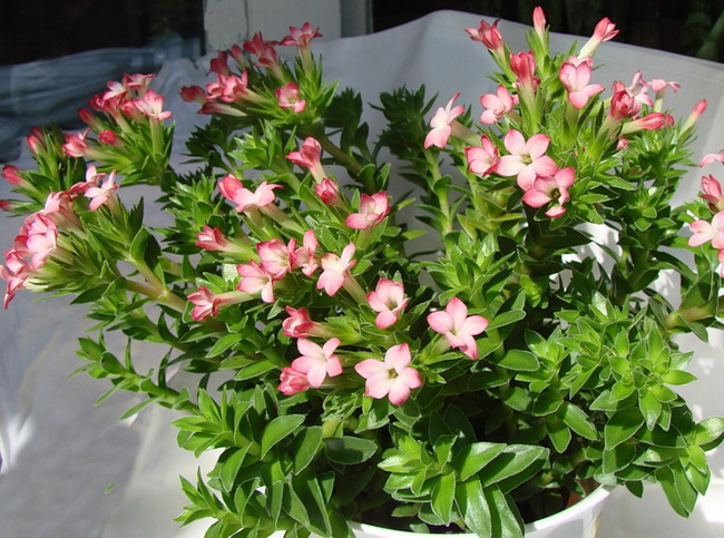 Род назван в честь французского ботаника Ф. де ла Роша (начало XIX века). Другое название рода — рошея. Известно 4 вида растений, распространенных в Южной Африке. Рохея ярко-красная культивируется как горшечная культура. Родина — Южная Африка. Кустовидное суккулентное растение высотой до 60 см, в культуре обычно значительно ниже. Стебли прямостоячие, позднее полегающие, густооблиственные. Листья длиной 2—3,5 см, накрест супротивные, сидячие, мясистые, яйцевидные или яйцевидно-ланцетные, туповатые, цельнокрайние, голые, по краю с очень короткими бесцветными ресничками. Цветки красные по 4—10 в верхушечных щитковидных соцветиях. Местоположение: светлое, но защищенное от прямых солнечных лучей; как можно более прохладное и проветриваемое; зимой содержат также в светлом месте при температуре 6—10°С, при более высокой температуре может отсутствовать цветение. Полив: поскольку эти растения суккуленты, летом их следует поливать очень умеренно, а зимой — с таким расчетом, чтобы почва не высохла окончательно. Земельная смесь: состоит из дерновой, листовой, перегнойной земли и песка (4:1:1:1). Подкормка: с весны до позднего лета каждые 2 недели вносят удобрения для кактусов или 1 раз в месяц сильно разбавленное цветочное удобрение. Размножение: весной и летом стеблевыми черенками. Примечание: весной после цветения можно укоротить побеги и вынести растение в затененное и прохладное место, где оно будет продолжать расти.