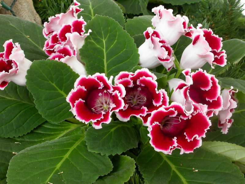 Род навзван по имени немецкого цветовода В. Синнинга (1794-1874), он включает около 80 видов клубневых многолетних трав, произрастающих в тропических лесах Бразилии. Природные виды синнингий в культуре малоизвестны, однако 2 из них стали исходными для многочисленных гибридов с крупными чашевидными цветками всех оттенков красного, фиолетового и голубого цветов, а также со снежно-белыми и многоцветными одиночными цветками и группами цветков. Иногда их называют глоксиниями. Неправильно употребляемое по сегодняшний день название «глоксиния» происходит от старого, состоящего в близком родстве с синнингией рода глоксиния, к которому раньше относили некоторые многолетники и невысокие кустарники. Синнингия королевская. Родина — Бразилия. Травянистое растение. Стебли утолщенные, укороченные (до 10 см), с 4—6 парами супротивных листьев. Листья длиной 10—20 см, широкоовальные или эллиптические со слабосердцевидным основанием, темно-зеленые с серебристыми жилками, бархатистые, снизу пурпурные (особенно молодые). Цветки пазушные на высоких (до 20 см) цветоносах, палево-фиолетовые, поникшие, длиной 3—4 см, шириной в зеве до 5 см. Цветет летом. После цветения надземные части отмирают. В культуре с начала XX века. Синнингия красивая. Родина — Бразилия, растет на прибрежных скалах. Вид, сходный с предыдущим. Отличается более светлыми листьями, суженными к основанию. Жилки и ткань листа вдоль них не имеют серебристой окраски. Цветки фиолетовые или пурпурные. Многочисленные садовые формы различаются окраской цветков. Синнингия лесная (глоксиния) была завезена из Америки только в середине 60-х годов. Это красивое растение достигает 60 см в длину и отличается серо-зелеными листьями, покрытыми щетинками, и красными или желтыми колокольчатыми цветками, появляющимися в июле и цветущими до осени. На зиму наземная часть растения отмирает, выживает только корневище. Синнингия багряно-красная, родственная глоксинии, также происходит из тропических лесов Южной Америки, нуждается в таком же уходе, как и гибриды синнингии, однако ее клубни можно хранить зимой. В цветочных магазинах их все еще продают под старым названием «рехстейнерия». Ее ярко-красные длинные трубчатые цветки появляются весной и летом. Местоположение: светлое, но не под прямыми солнечными лучами; гибриды синнингии следует беречь от сквозняков; клубни синнингии багряно-красной после увядания листьев следует высушить и хранить в том же самом горшке при температуре 8—15°С; освещение в этот период не требуется; весной клубни высаживают в свежую почву, ставят в светлое и теплое место (температура 20—25°С) и поливают, чтобы почва была постоянно влажной, а растения пустили побеги. Полив: регулярно поливают водой комнатной температуры; с весны до периода увядания листьев поливают умеренно, используя мягкую воду; влажность воздуха повышают орошением, но надо следить за тем, чтобы влага не попадала на листья и цветки растения. После того как листья засохнут, полив прекращают. Земельная смесь: состоит из листовой земли, торфа и песка в равных частях. Подкормка: с момента возобновления роста вплоть до позднего лета еженедельно вносят цветочное удобрение, концентрация которого должна быть вдвое меньше, чем указано на упаковке. Размножение: весной верхушечными черенками либо делением корневища. Разводить 