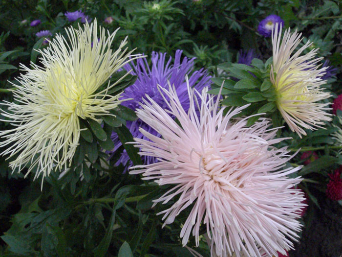 Научное название — каллистефус китайский. Родина — Китай. Однолетнее травянистое растение 20—100 см высотой с прямостоячим, ветвистым стеблем. Листья очередные, нижние лопатчатые, крупные; стеблевые — продолговатые мелкие. Соцветия — корзинки на концах побегов, крупные (до 10—20 см в диаметре), густомахровые, махровые, полумахровые и немахровые, самой разнообразной окраски: от белой до темно-фиолетовой, исключая зеленую, очень эффектные. По форме и строению соцветий астры подразделяются на пионовидные, хризантемовидные, анемоновидные, страусово перо, игольчатые и др; по высоте — на низкорослые (до 30 см), среднерослые (до 60 см), высокорослые (до 80 см), гигантские — (до 100 см); по срокам цветения — ранние, средние и поздние; по использованию — срезочные, обсадочные, горшечные. Плод — семянка; семена сохраняют всхожесть 2—3 года, но лучше высевать свежие семена. У ранних сортов — период от всходов до начала цветения — 83—106 дней. В зависимости от сорта, сроков посева и условий выращивания астры цветут с середины июля до глубокой осени. Астры — светолюбивые, холодостойкие растения, к почвам не очень требовательны, могут расти на разных почвах, кроме тяжелых, глинистых и кислых. Размножают семенами рассадным способом (посев в марте—апреле) или прямо в ящики в конце апреля с последующим прореживанием на расстоянии 15—40 см, в зависимости от сорта. При необходимости подкармливают полным минеральным удобрением (30—40 г на 10 л воды) или цветочной смесью. Поражается черной ножкой, гнилью корней и основания стебля, пятнистостью, ржавчиной и др.; повреждается тлями, клещиком, слизнями.