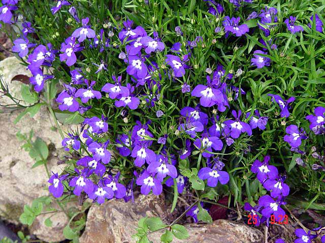 Родина — Южная Африка. Многолетнее травянистое растение, выращиваемое как летник, с тонкими, сильно- ветвящимися, густооблиственными, иногда окрашенными стеблями, шаровидной, компактной или раскидистой формы, 10—30 см высотой. Цветки мелкие, расположены по одному в пазухах листьев, всех оттенков синего, реже белые или двухцветные. Плод — многосемянная коробочка, семена очень мелкие; в 1 г 50000 семян, всхожесть сохраняют 3 года. Цветет очень обильно с июня по сентябрь. После первой волны цветения растения обрезают на высоте 5 см, после чего они снова образуют побеги и наступает вторая волна цветения. Лобелия теплолюбивое и светолюбивое растение, но переносит полутень, хорошо растет на рыхлых, суглинистых или супесчаных почвах; довольно влаголюбива. На слишком жирных, удобренных органическими удобрениями почвах вытягивается, образует массу листьев и слабо цветет. Размножают семенами, рассадным способом. Посев в феврале—марте. Культура с медленным циклом развития. На балконе растения высаживают с середины мая на расстоянии 10—15 см друг от друга. Хорошо закаленная рассада выдерживает заморозки до минус 1—2°С. Имеется несколько садовых форм и сортов по форме растения: прямостоячая (Эректа), компактная (Компакта), висячая (Пендула). Кроме сортов с синей окраской, есть сорта с белыми цветками. Ампельные сорта используют для ваз, горшков, первого наружного ряда в балконных ящиках. Лобелия хорошо сочетается с красными пеларгониями, сальвией блестящей или желтым губастиком (мимулюсом). Лобелия лучше выглядит на близком расстоянии. Болезни и вредители не выявлены.