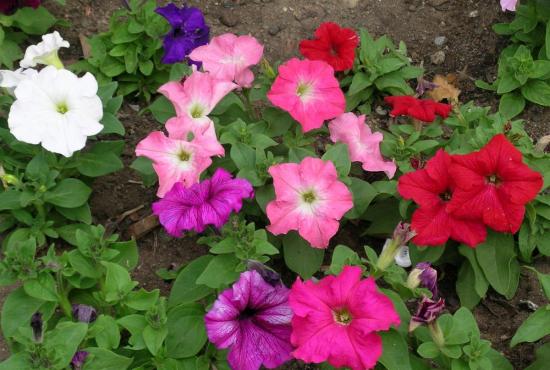 Родина — Южная Америка. Многолетник, используемый как летник. Растение травянистое, прямостоячее или стелющееся, густоветвистое, с множеством стеблей первого, второго и третьего порядка, 20—75 см высотой. Цветки воронковидные, одиночные, на коротких цветоножках, душистые, образуются в пазухах листьев, самых разнообразных окрасок: от белой до темно-фиолетовой, двух-трехцветные. Цветет с июня по октябрь. Плод — двустворчатая коробочка, семена очень мелкие, всхожесть сохраняют 3—4 года. Петунии подразделяют на 2 класса — многоцветковые и крупноцветковые, различающиеся по величине цветка и другим признакам. Многоцветковые петунии с тонкими, хрупкими стеблями отличаются ранним цветением, устойчивостью к неблагоприятным погодным условиям. Хорошо завязывают семена. Крупноцветковая петуния имеет крупные цветки и мясистые листья. Хуже переносит неблагоприятные погодные условия, ее лучше культивировать в южных условиях. Цветение на 2 недели позже и не такое обильное, как у многоцветковых. У каждой из этих групп есть низкорослые компактные формы. У них боковые стебли отходят от главного под прямым или острым углом, образуя плотный сферической формы куст. Есть махровые формы. Группа балконных петуний с длинными, свисающими стеблями устойчива к неблагоприятным условиям погоды. Имеется много гетерозисных гибридов, отличающихся высокими декоративными качествами, ранним цветением, компактным ростом и устойчивостью к неблагоприятным условиям произрастания. Петуния — светолюбива, неморозоустойчива, засухоустойчива, переносит полутень и нетребовательна к почвам. Хорошо растет на легких и тяжелых глинистых почвах. Не переносит застоя воды. Размножают семенами и черенками. В нечерноземной зоне выращивают рассадным способом. Посев — в конце марта — начале апреля в комнате. В открытый грунт растения высаживают после окончания весенних заморозков на расстоянии 20—25 см друг от друга. Ампельные сорта размножают чаще черенками, так как семена не завязываются в наших условиях. Укоренение проводят в середине лета в горшках на балконе, перед морозами растения необходимо занести в помещение — они служат маточниками. В комнате можно укоренять петунию даже осенью. В феврале лезвием бритвы срезают молодые побеги на черенки, удалив нижние листья, и ставят в стакан с водой, добавив в нее несколько капель раствора марганцовокислого калия. Если черенки начнут подвядать, их надо опрыснуть водой. Молодые растения высаживают в горшочки с землей, накрывают на 5—6 дней стеклянной банкой. На окнах они стоят до середины апреля. С наступлением теплых дней их выносят на балкон, где они постепенно привыкают к новым условиям, закаливаются. В конце апреля укоренившиеся черенки можно высадить в балконные ящики. Они не боятся весенних заморозков. В крайнем случае их можно укрыть пленкой. В ящиках петунии лучше высадить в первом ряду, где светлее, и так, чтобы побеги ниспадали. Петуния — одно из наиболее пригодных для балконного озеленения растений. В саду их можно выращивать вместе с другими растениями или отдельно, используя одноцветные или различные по окраске сочетания. Иногда поражается гнилью, мучнистой росой, мозаикой.