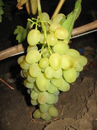 Находка— сложный межвидовой гибрид раннего срока созревания, 110 дней. В корнесобственной и привитой культуре среднесильного роста. Грозди крупные, 0,7-1,5 кг, среднеплотные, конические, не подвержены горошению. Ягоды 7-8 г, сосковидные, розового цвета, приятного освежающего вкуса, бессемянные. В отдельных ягодах присутствуют рудименты. Мякоть среднеплотная, кожица съедаемая. Урожайность высокая и стабильная. Побеги вызревают хорошо, черенки легко укореняются, совместимость с подвоями хорошая. Выдерживает мороз -23°С. Устойчивость к грибным заболеваниям — 3 балла. Транспортабельность и товарность высокие. Осами повреждается слабо. Кеша х Осенний черный — межвидовой гибрид среднего срока созревания, 130 дней. Перегрузка урожаем, а также избыточное внесение азотных удобрений задерживает срок созревания. В корнесобственной и привитой культуре сильнорослый. Грозди крупные, от 0,8 до 1,5 кг, конические, не подвержены горошению. Ягоды винограда очень крупные, 12 г, овальные темно-синие, гармоничного вкуса. Мякоть среднеплотная, кожица съедаемая. Урожайность высокая. Побеги вызревают хорошо, черенки легко укореняются, совместимость с подвоями хорошая. Морозостойкость -23...25°С. Транспортабельность и товарность хорошие. Устойчивость к грибным заболеваниям — 3-3,5 балла. Осами повреждается слабо. |